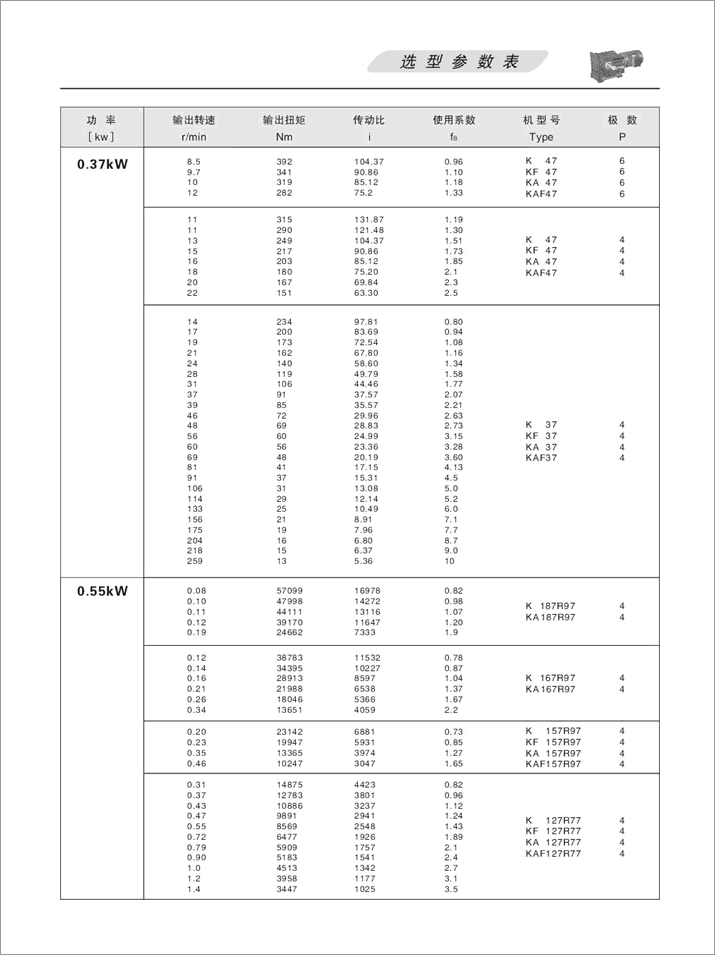 上一篇:K螺旋錐齒輪減速機(jī)選項(xiàng)參數(shù)表0.55kW